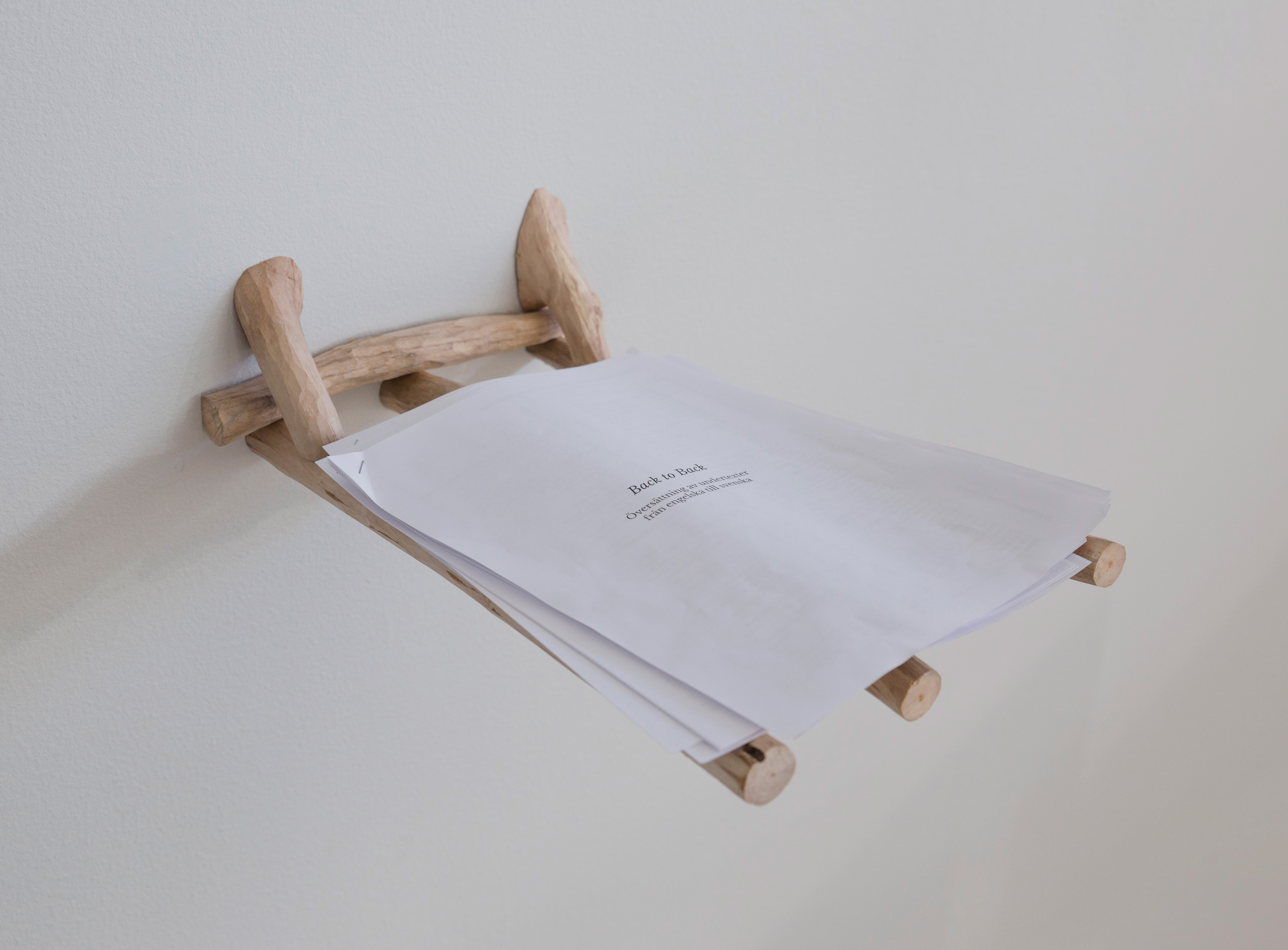 In a series of films, Karin Keisu and Josse Thuresson bring together historical experiences of two languages, Swedish Sign Language and Meänkieli, which were once deemed unfit to play a part in the development of modern Sweden. Sign language was banned in education in 1880, and students were encouraged to learn lipreading and given speech therapy instead. In the workhouses of Norrbotten, where underprivileged children were taught from 1903 to 1954, speaking Meänkieli was prohibited. This ban was part of the Swedification process initiated by the Swedish state, which was intended to shape the citizen body of the future. In both these educational systems, crafts were taught to provide the children with skills that would make them upstanding, productive citizens. As an alternative to this approach to creative work, Keisu and Thuresson have decided to show their film works within an unruly wooden installation–a sculptural body that directs the viewer’s attention to the playful, intuitive, and multilingual.