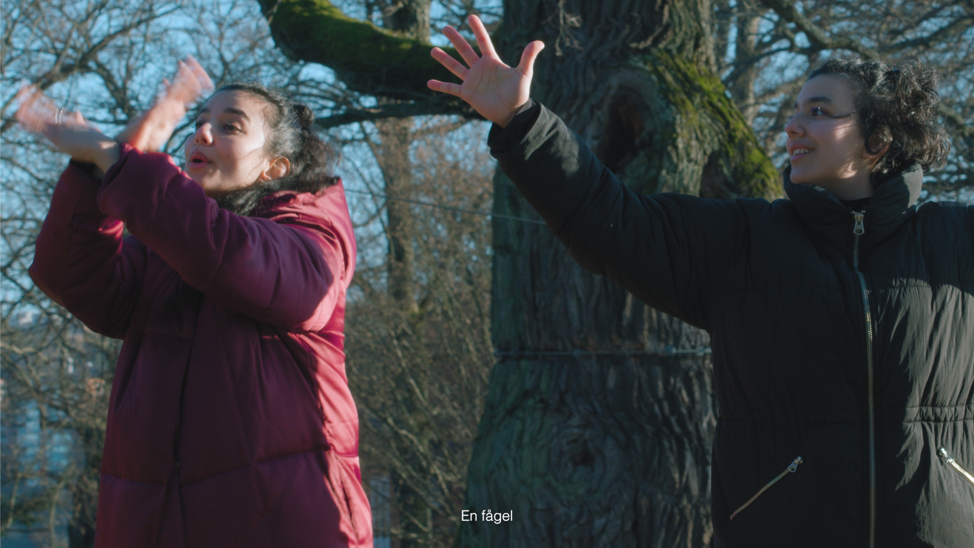 In a series of films, Karin Keisu and Josse Thuresson bring together historical experiences of two languages, Swedish Sign Language and Meänkieli, which were once deemed unfit to play a part in the development of modern Sweden. Sign language was banned in education in 1880, and students were encouraged to learn lipreading and given speech therapy instead. In the workhouses of Norrbotten, where underprivileged children were taught from 1903 to 1954, speaking Meänkieli was prohibited. This ban was part of the Swedification process initiated by the Swedish state, which was intended to shape the citizen body of the future. In both these educational systems, crafts were taught to provide the children with skills that would make them upstanding, productive citizens. As an alternative to this approach to creative work, Keisu and Thuresson have decided to show their film works within an unruly wooden installation–a sculptural body that directs the viewer’s attention to the playful, intuitive, and multilingual.